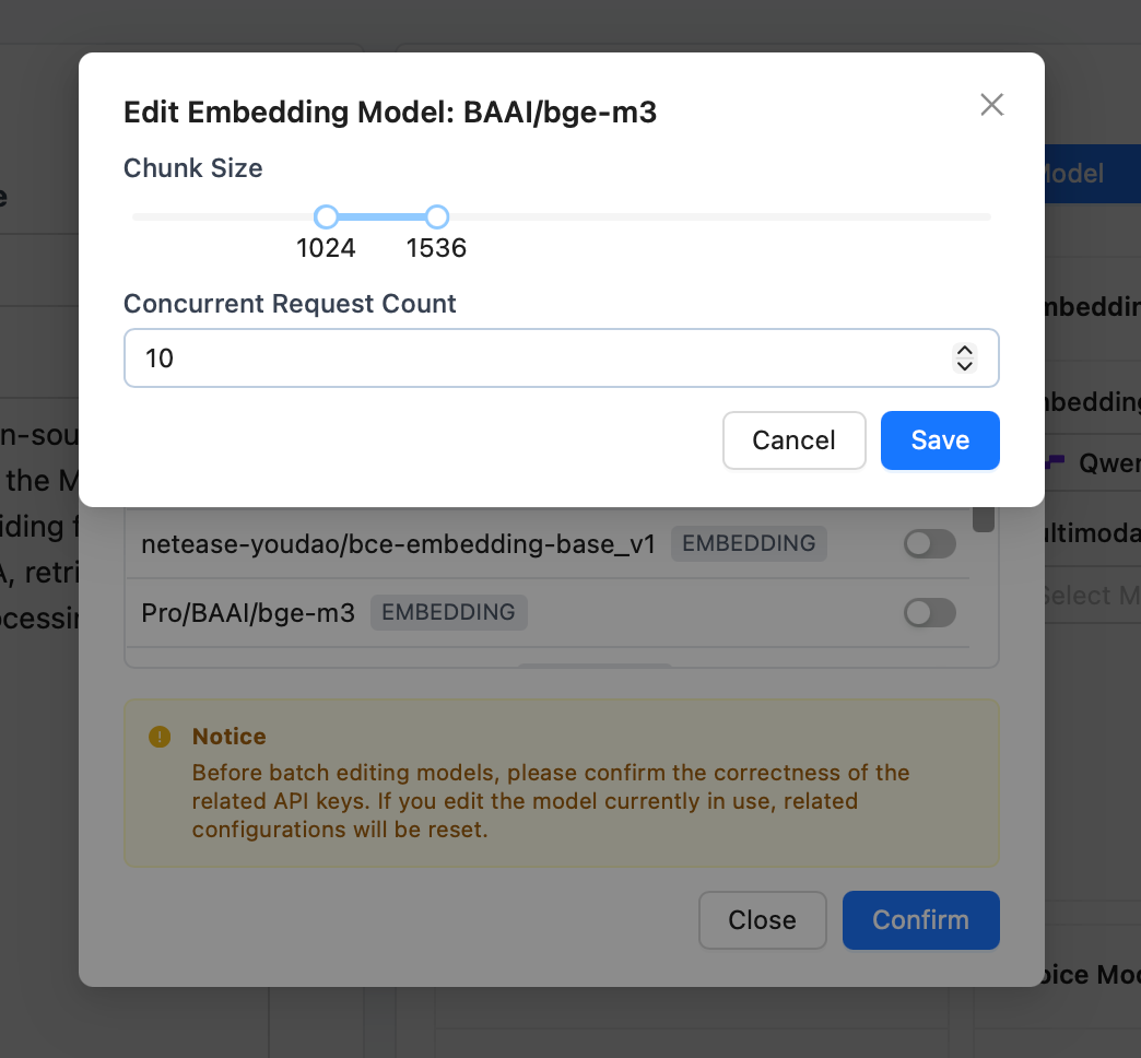 - Embedding model configuration affects the stable operation of knowledge bases.